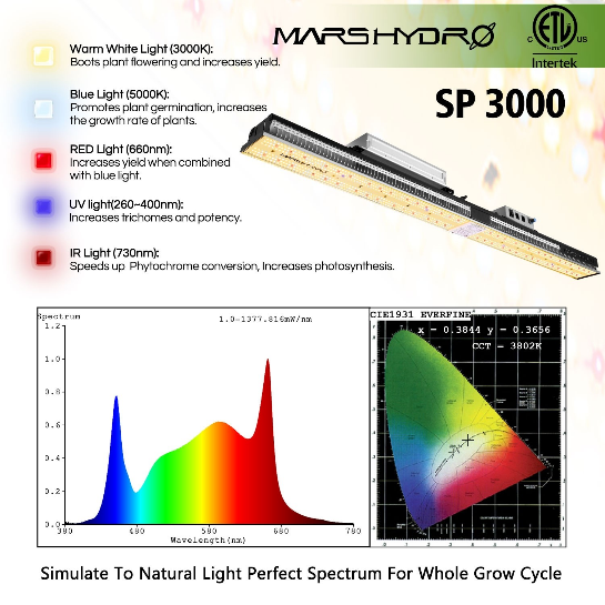 SP3000 is a large single strip LED grow light fitted with high-quality Samsung LM301B chips and a broad spectrum of boosted red light. Equipped with high penetration and minimum obstruction of natural sunlight, It’s highly recommended as supplemental or major lighting for greenhouses.